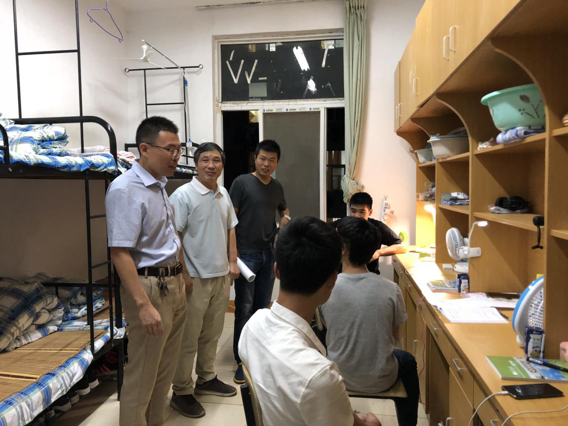学期伊始,迎来新生。为迎新送去公司关怀,做好2018级新生宿舍安全与卫生工作。9月4日晚上,公司党委书记赵季春,副经理吕小光,党委副书记倪军,辅导员徐建婷、尚凌宇共同走访2018级新生宿舍,了解新生的学习和生活情况。