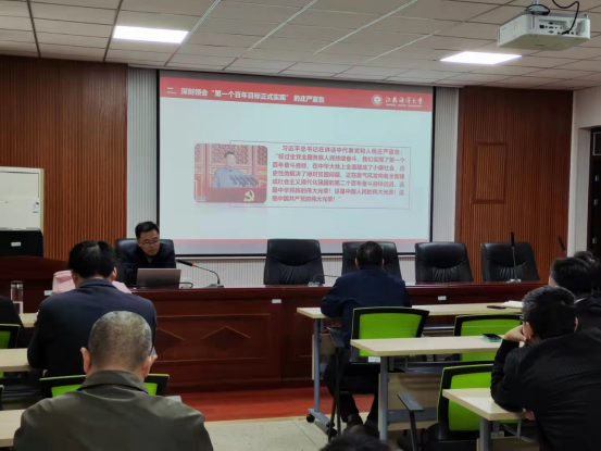为推进党史学习教育持续走深走实,10月20日下午,bevictor伟德官网邀请校宣传部张兵副部长在定海楼N512会议室,做党史学习教育专题党讲座,主题为学习习近平总书记在庆祝中国共产党成立100周年大会上的重要讲话精神解读——《从党的历史中汲取智慧和力量》,全院教职工参加学习,党委书记赵季春主持。