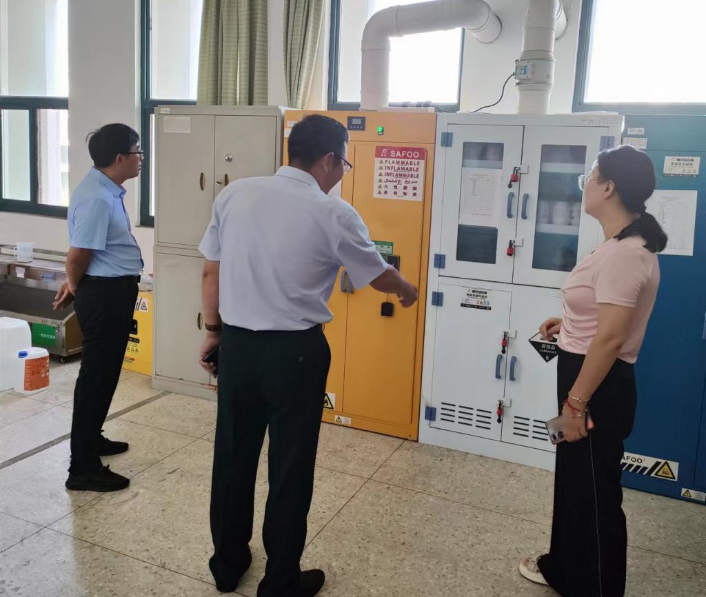 本次检查共分为三组,各组分工明确,对定海楼各办公室、实验室以及苍梧、通灌校区员工宿舍进行安全检查,每到一处场所,检查小组都认真听取汇报,围绕消防、用电、环境卫生、员工管理、实验室安全等方面进行排查,同时做好排查登记,对存在安全隐患及时整改,做到防患于未然。