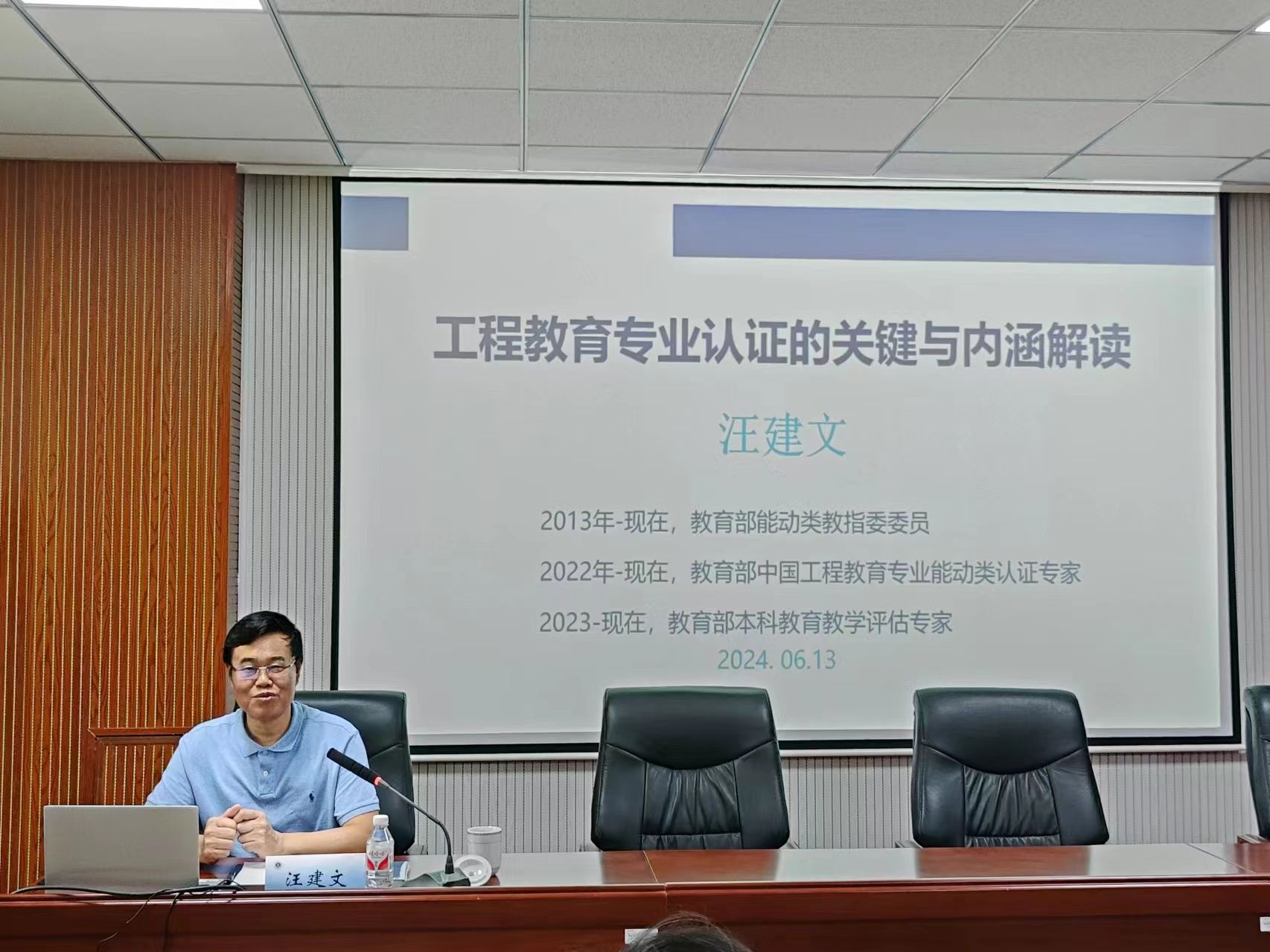 为加快推进bevictor伟德官网在工程教育专业认证进程,确保申请和自评报告撰写质量,使专业认证申请和自评材料达到高标准,同时提升bevictor伟德官网专业建设水平,6月13日,公司邀请教育部能动类教指委委员、中国工程教育专业认证专家、本科公司产品审核评估专家、内蒙古工业大学汪建文教授,为公司师生带来题为《工程教育专业认证的关键与内涵解读》的专题讲座。