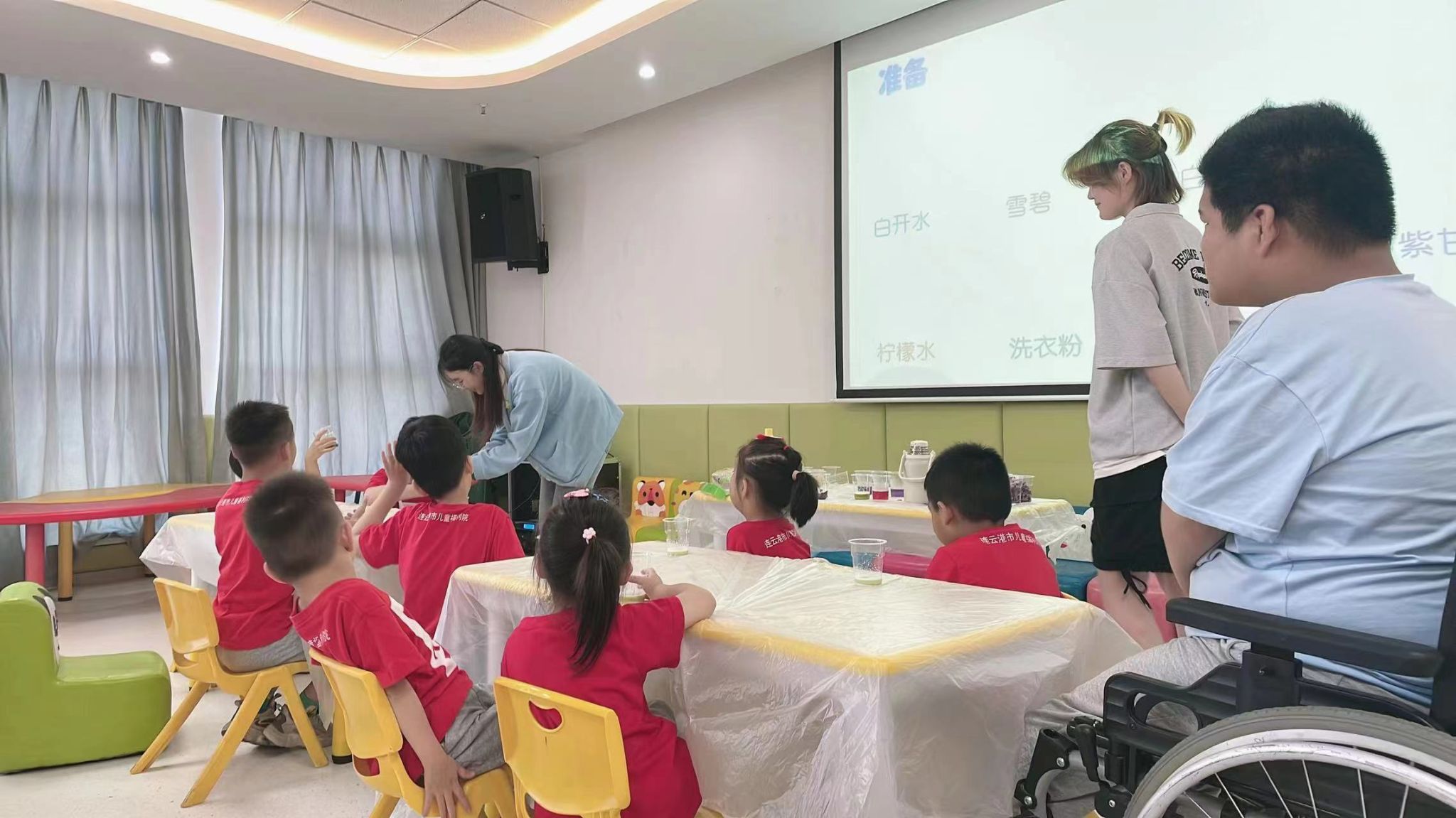 活动开始前,志愿者们精心准备活动所需物品及讲解PPT,她们希望通过丰富多彩的活动,激发孩子们的学习兴趣,拓宽他们的视野,让他们感受到社会的温暖和关爱。在科学实验环节,志愿者们引导孩子们亲手制作紫甘蓝汁水,通过观察和实验,孩子们不仅学到了关于酸碱指示剂的知识,更体验到了科学探索的乐趣。整个活动过程中,志愿者们与孩子们互动频繁,她们耐心地解答孩子们的问题,鼓励他们勇敢表达自己。孩子们的脸上洋溢着纯真的笑容,他们的眼神中充满了对知识的渴望和对未来的憧憬。