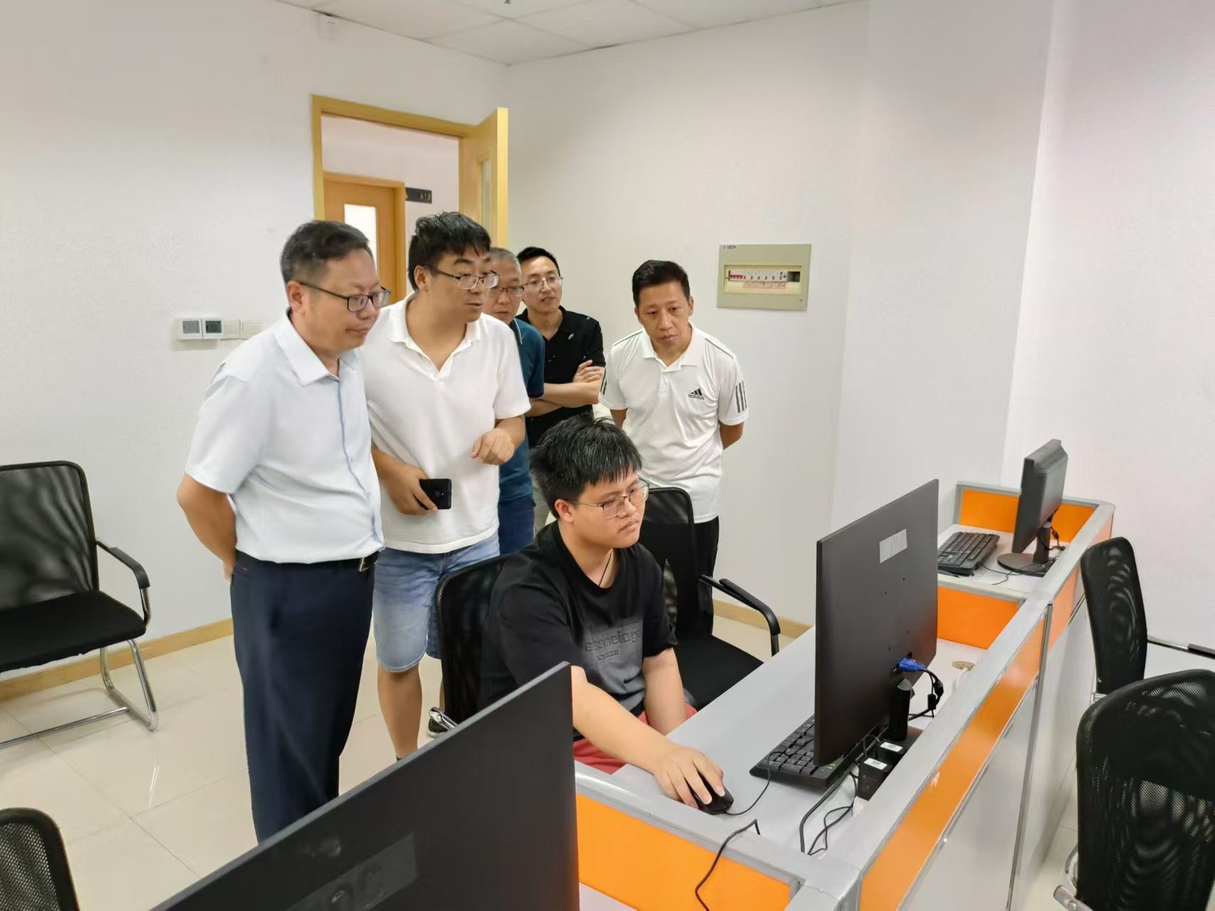 在深入贯彻教育部及省委教育工委关于“访企拓岗促就业”专项行动的部署下,9月14日公司党委书记张振松带领信息与计算科学系主任查明明、副主任李鸿鹏、公司党政办公室一行4人于前往无锡极客营,对信息嵌入式专业员工的实训情况进行了巡查,并开展了访企拓岗活动。此次行动旨在深化校企合作,拓宽毕业生就业渠道,促进高质量就业。