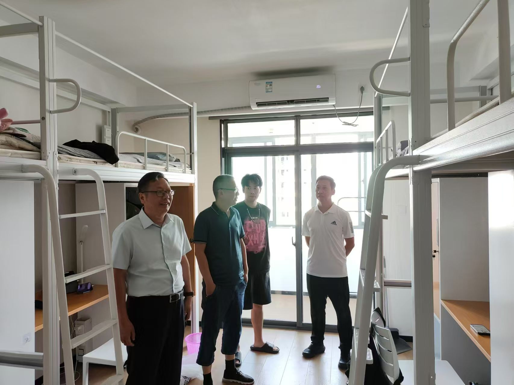 在董峰董事长的陪同下,张振松一行参观了员工宿舍和实训中心,对员工们的学习和生活环境进行了深入了解。在巡查过程中,张振松书记一行首先来到了员工们的实训中心,这里配备了先进的计算机设备和软件工具,为员工们提供了一个接近真实工作环境的学习平台。在实训中心,员工们展示了他们正在开发的应用程序和正在进行的数据分析项目。张振松书记对员工们在项目中展现出的创新思维和专业技能表示赞赏,并鼓励他们继续努力,将所学知识转化为解决实际问题的能力。张振松书记特别强调了实习对于员工专业成长的重要性,鼓励同学们珍惜实习机会,通过实践学习来提升专业技能和综合素质。他要求员工们严格遵守实习单位的规章制度,以文明、规范、安全的态度完成实习任务,充分展现公司员工的良好形象。