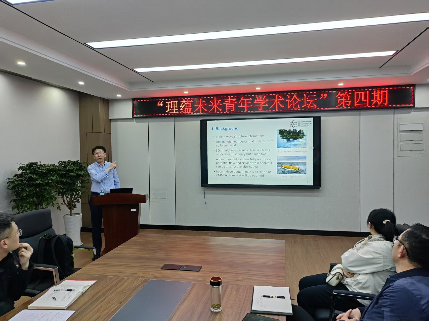 论坛最后,史林兴作总结讲话。他指出,本期论坛以“海洋国际+”为纽带,精准锚定三大价值维度:一是聚焦海洋势流理论创新,解码数值模拟技术对海洋工程研究的范式突破;二是强化学科交叉融合,通过前沿研讨激荡思维,直击数学物理方法与海洋科技深度融合;三是深化“海洋+”战略纵深推进,以理论-技术-应用的全链条创新赋能学科生态升级。他强调,系列论坛持续聚焦“海洋+”学科群建设,既彰显了数学、物理等基础学科与海洋科技深度融合的战略价值,也为青年教师锚定国家“海洋强国”需求、探索跨领域协同创新提供了实践范式。钱岭教授作为曼彻斯特城市大学的国际知名学者,其研究成果不仅为公司学科发展注入前沿视角,更通过国际化科研合作网络,推动“海洋+”学术品牌与国际海洋科技前沿接轨。公司将持续以学术品牌为引擎,加速构建“基础研究夯基垒台、技术攻关立柱架梁、工程应用积厚成势”的科研生态,并通过深化国际学术交流,拓展联合攻关与人才共育路径,为服务海洋产业高质量发展注入兼具国际视野与本土实践的bevictor伟德官网智慧。