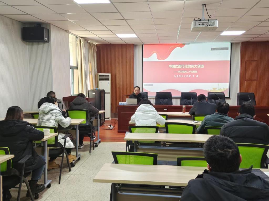 会上,王波以“以中国式现代化的伟大创造”为题,从“中国式现代化何以可能,从中国式现代化何以形成,从中国式现代化何以特殊,从中国式现代化何以拓展”等四个方面指出中国式现代化是社会主义现代化,表现出一系列鲜明特征,具有巨大的世界影响,新时代新征程将进一步深化拓展中国式现代化。通过此次报告会使参会人员对党的二十大精神中中国式现代化有了更深层次理解。