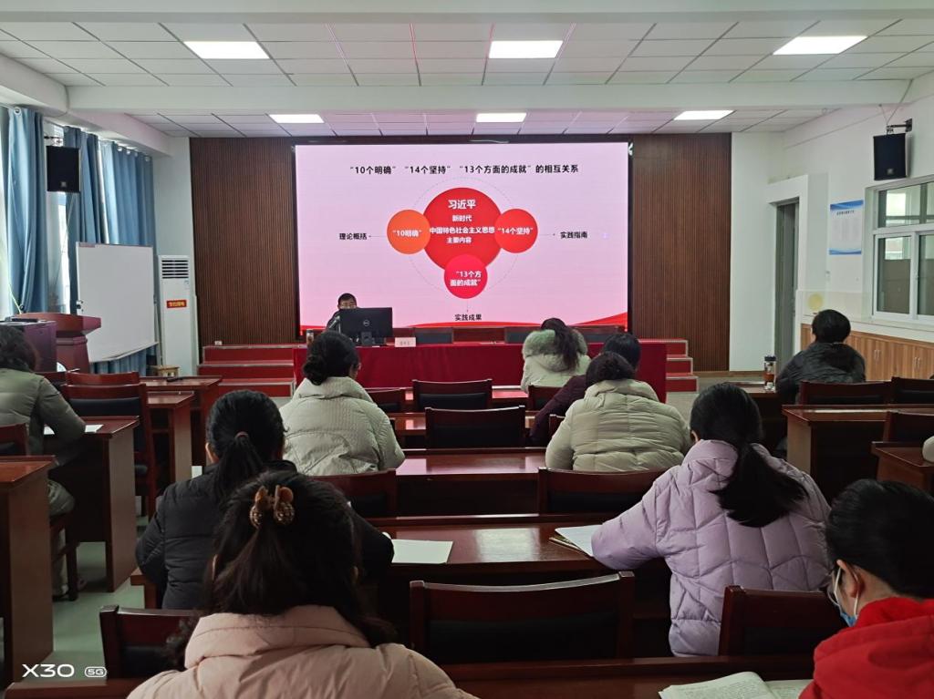 宣讲活动开始,由数学与应用数学党支部徐传友老师作了《以中国式现代化推进中华民族伟大复兴——党的二十大精神学习解析》的宣讲报告。徐传友围绕党的二十大报告的主要内容,强调党的二十大报告亮点之一是首次单独成章对教育、科技、人才工作进行一体部署,突出了教育、科技、人才对全面建设社会主义现代化国家的基础性、战略性支撑作用。我们作为教育工作者,要在党的二十大精神的引领下,勇于承担为党育人、为国育才的使命,着力培养合格的社会主义事业接班人,办好人民满意的教育。数学与应用数学党支部代表和南城小学的部分教师约二十余人参与了本次宣讲活动。