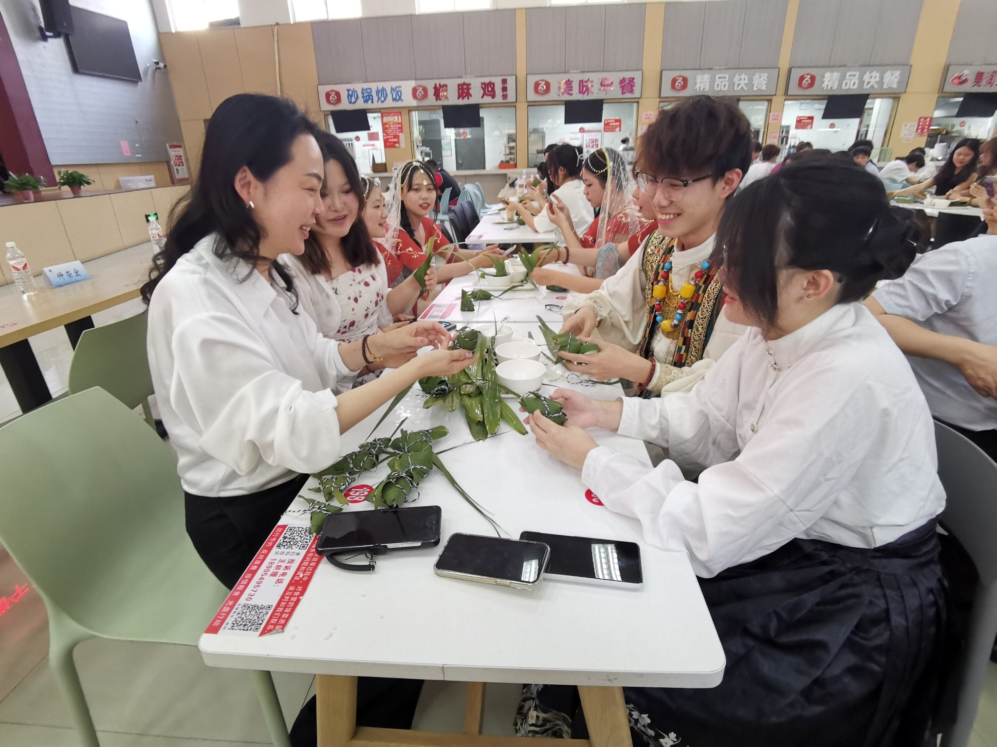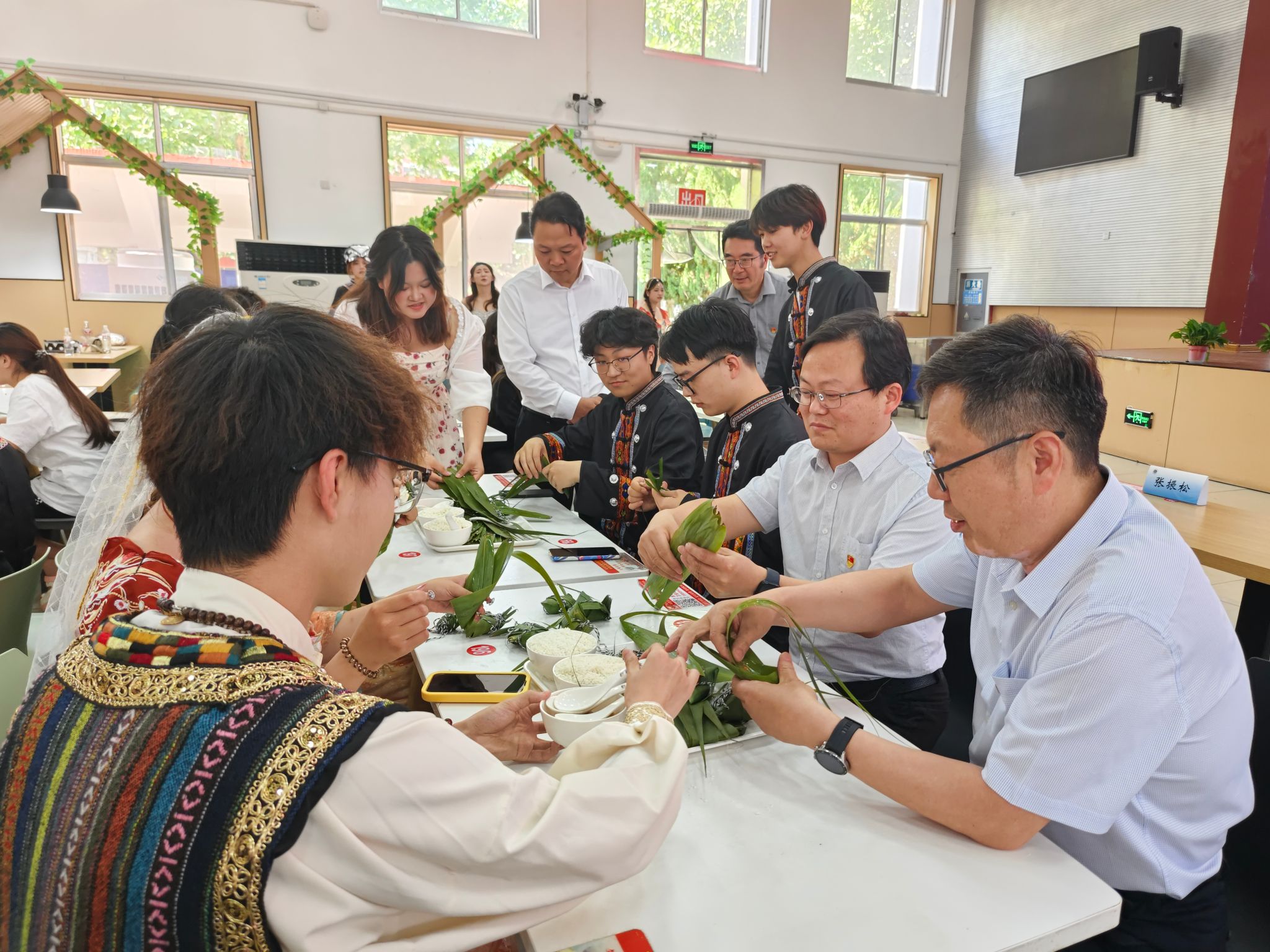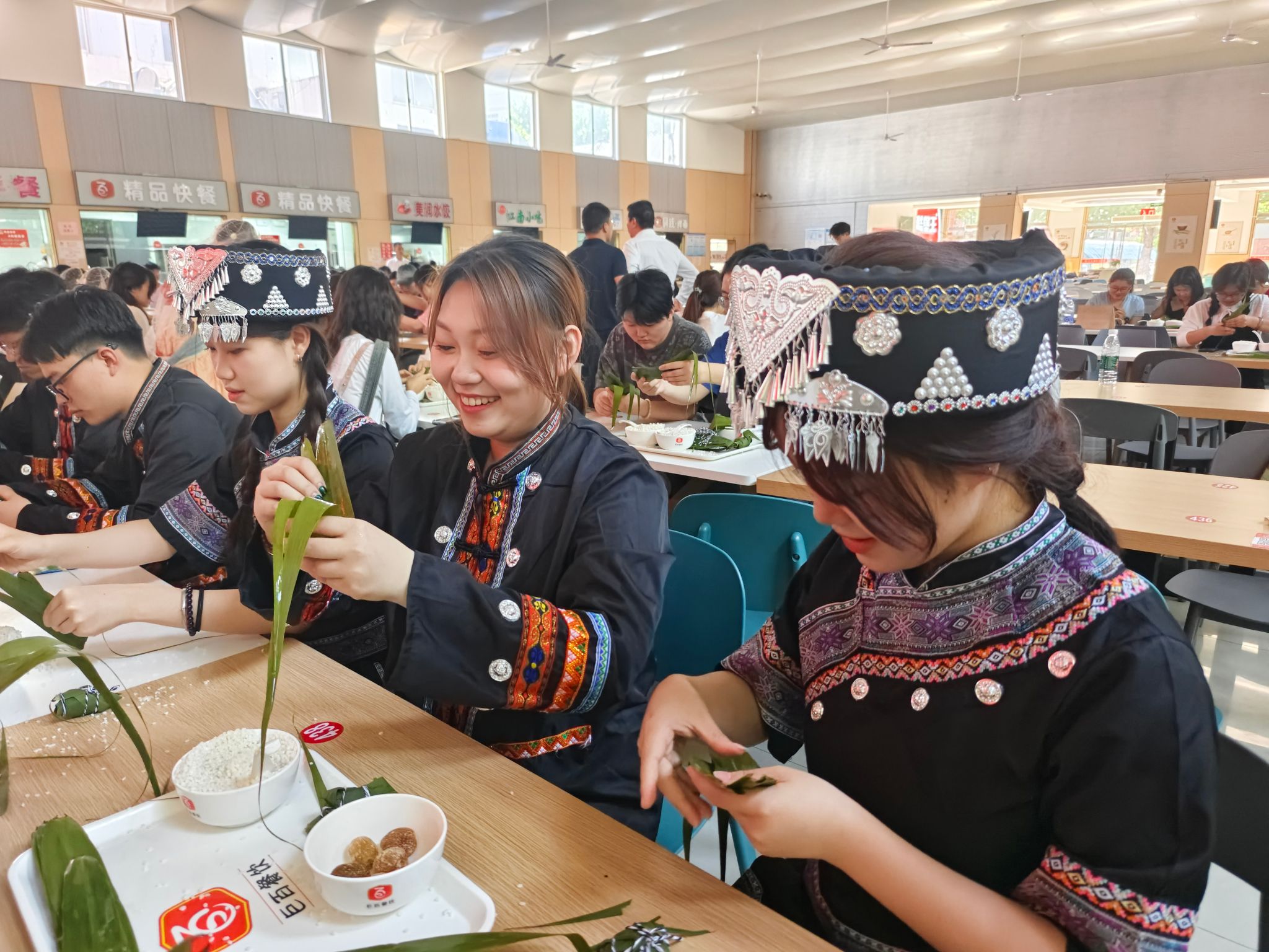 活动中,同学们表演了《屈原赋》《摆手舞》《千年的祈祷》《身骑白马》等民族歌舞。身着民族服装的各族员工围坐一起,欣赏精彩的演出,共同忆习俗、话家常、谈感悟,共叙民族团结情。在师生一起动手包粽子环节,老师们亲自示范,传授包粽子技巧。活动现场欢声笑语,其乐融融,师生们体验着包粽子的乐趣,分享自己的劳动成果,相互赠送祝福。