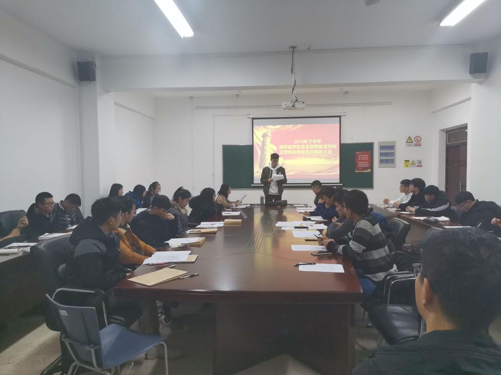 会议伊始,由发展党员对自我在校期间的思想、生活、学习等方面进行总结,表达了对党的向往,对党的忠诚;之后,由预备党员进行预备期一年的思想工作总结,表示坚定不移跟党走,为党的工作付出自己的力量,为共产主义事业奋斗终生。入党介绍人也向支部介绍了各位预备党员在预备期的综合表现,答辩小组对预备党员进行提问。最后,由正式党员根据发展党员及预备党员预备期的表现进行不记名投票,确定11名预备党员转正及19名发展党员为预备党员。