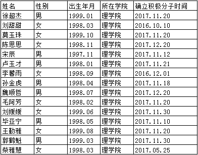 为了增强发展党员工作的透明度,更好地保证发展党员的质量,根据《中国共产党章程》、《中国共产党发展党员工作细则(试行)》的有关规定,现将本次公司员工党支部预备党员名单公示如下: