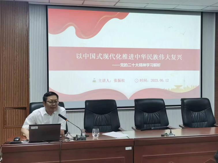 为深入学习宣传贯彻党的二十大精神,扎实开展学习贯彻习近平新时代中国特色社会主义思想主题教育,6月12日下午,公司党委书记张振松以《以中国式现代化推动中华民族伟大复兴》为题在定海楼512会议室为公司第五期入党积极分子讲授专题党课。