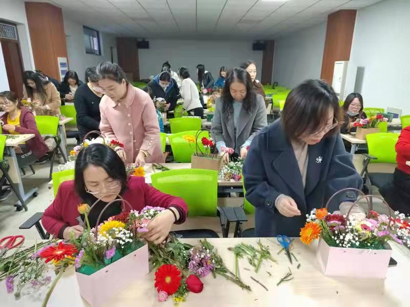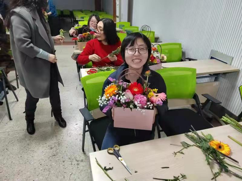 三八国际妇女节来临之际,为丰富公司女教职工的业余生活、陶冶情操,3月4日下午,公司在定海楼512会议室开展了一场“与花相伴 绽放芳华”三八节插花公益沙龙活动。30多位女教师在此体验插花艺术,感受插花艺术带来的精神享受。