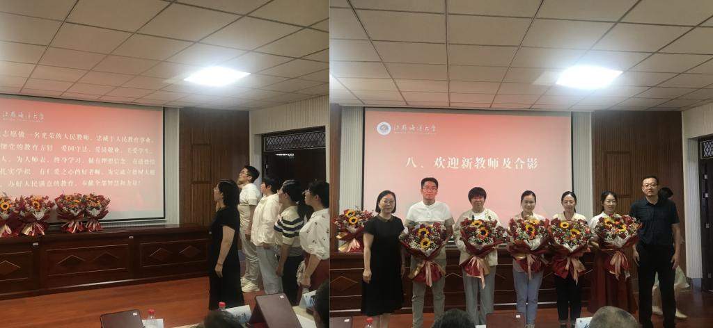 副经理黄增光宣读新教师名单,新教师走向台前,在副经理孙靖带领下,新教师进行了庄严的宣誓。