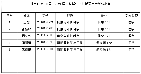 2020届、2021届本科毕业生拟授予学士学位名单公示
