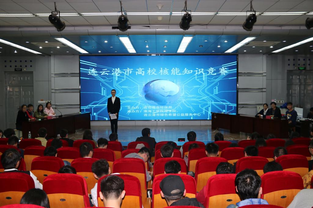 10月22日晚七时,由连云港市环保局主办,淮海工公司bevictor伟德官网与连云港市绿色希望公益服务中心共同承办,以宣传核能知识,提高高校员工科学素养为目的的连云港市高校核能知识竞赛在淮海工公司苍梧校区艺术楼报告厅举行。