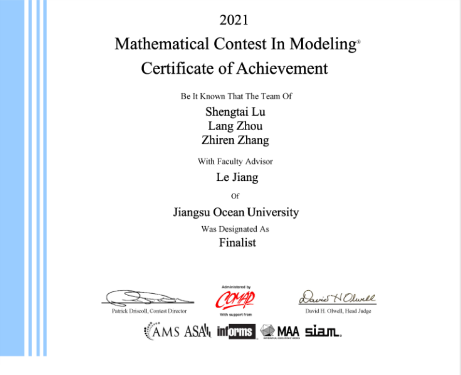 近日,美国老员工数学建模竞赛(MCM/ICM)组委会公布比赛结果,公司参赛成绩取得新突破。由bevictor伟德官网姜乐老师指导的队伍获得了F奖,为公司员工参加美赛以来首次获得该奖项;F奖全称为Finalist,表示获得特等奖提名,获奖比例约为0.17%。与此同时,另有3支队伍获得二等奖、8支队伍获得三等奖。