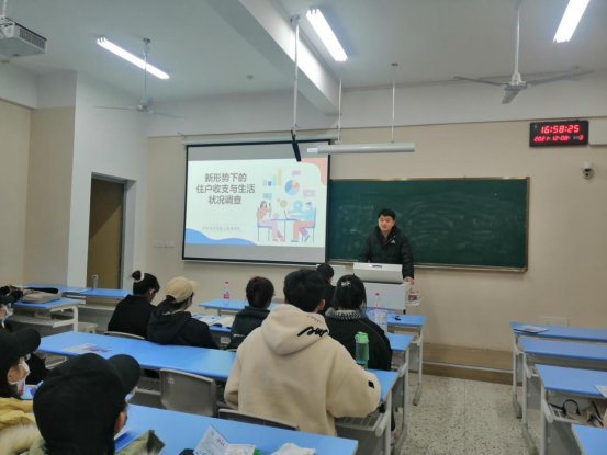 住户处姚文鹏老师以“新形势下的住户收支与生活状况调查”为题,讲述了他们在住户调查方面的工作流程以及遇到的相关问题。姚老师以2020年全国城镇居民人均可支配收入和2020年连云港城镇居民人均可支配收入为例,介绍了“居民人均可支配收入”的意义。姚老师讲到,在进行数据采集入户调查时,大多数被调查者会误以为住户收支是指净收入和总支出,调查队的工作远比同学们想象的繁杂。编制CPI的两大要素分别是权数和价格,其中权数是指不同分类对总指数的影响程度,只要来源于住户支出调查,其他补充数据用于提高准确度。最后,姚文鹏老师鼓励同学们积极学习专业知识,从事和自身专业相关的工作。
