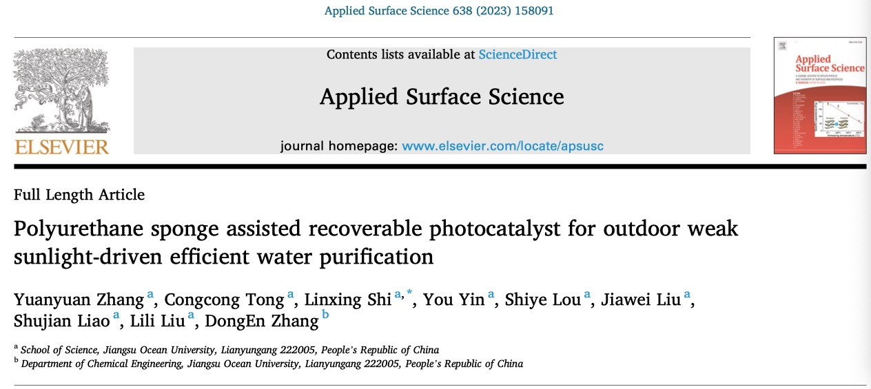 4Applied Surface Science:聚氨酯海绵辅助可回收光催化剂用于室外弱光驱动的高效水净化