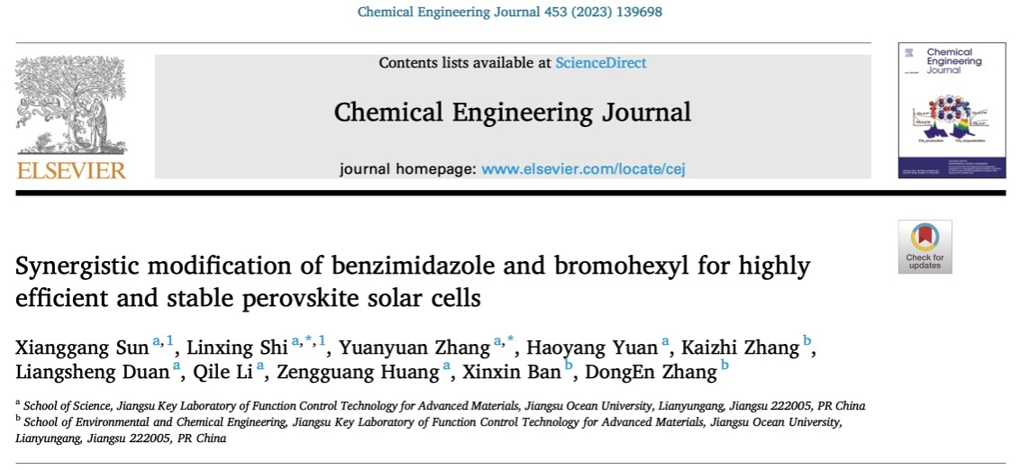 1.ChemicalEngineering Journal:苯并咪唑与溴己基协同修饰实现高效稳定的钙钛矿太阳能电池