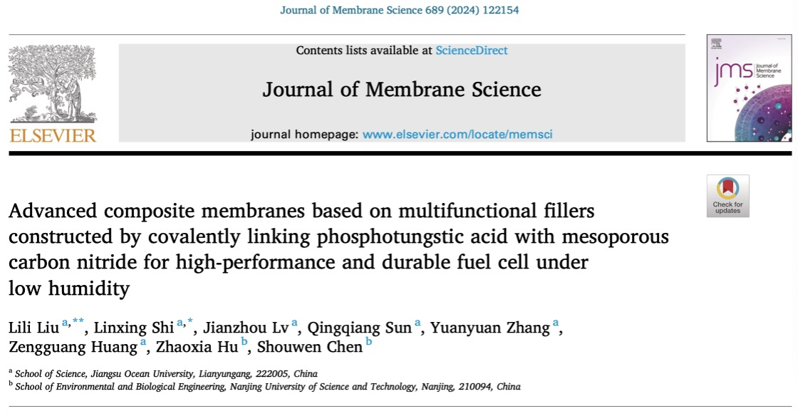 相关研究成果在国际著名期刊《Journal of Membrane Science》(IF:10.53;中科院一区