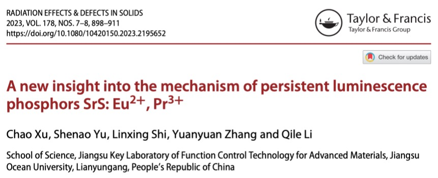 7.Radiation Effectsand Defects in Solids: SrS: Eu2+,Pr3+红色长余辉发光机理新见解