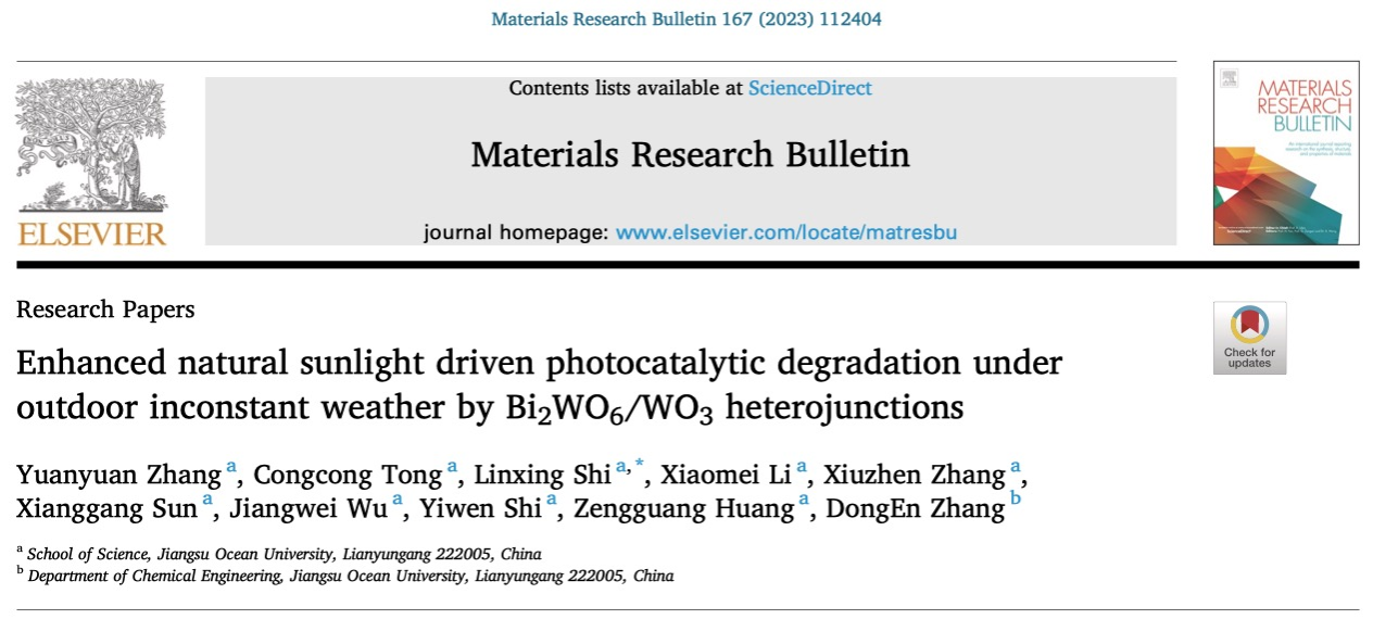 3Materials Research Bulletin:基于Bi2WO6/WO3异质结室外自然光照驱动的光催化有机污染物降解