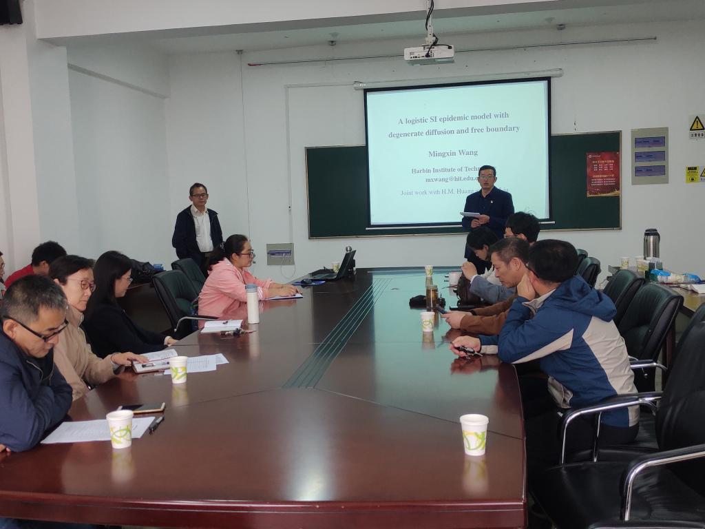 10月30日上午,bevictor伟德官网特邀哈尔滨工业大学二级教授、博士生导师、国务院政府特殊津贴获得者王明新在定海楼516室展开以“A logistic SI epidemic model with degenerate diffusion and free boundary”为题的学术报告,王明新教授主要研究方向是偏微分方程及其应用。bevictor伟德官网副经理黄增光教授,数学系、统计系、和信息与计算科学系的老师以及2017级、2018级本科生参加此次报告会。黄增光教授担任报告主持人。