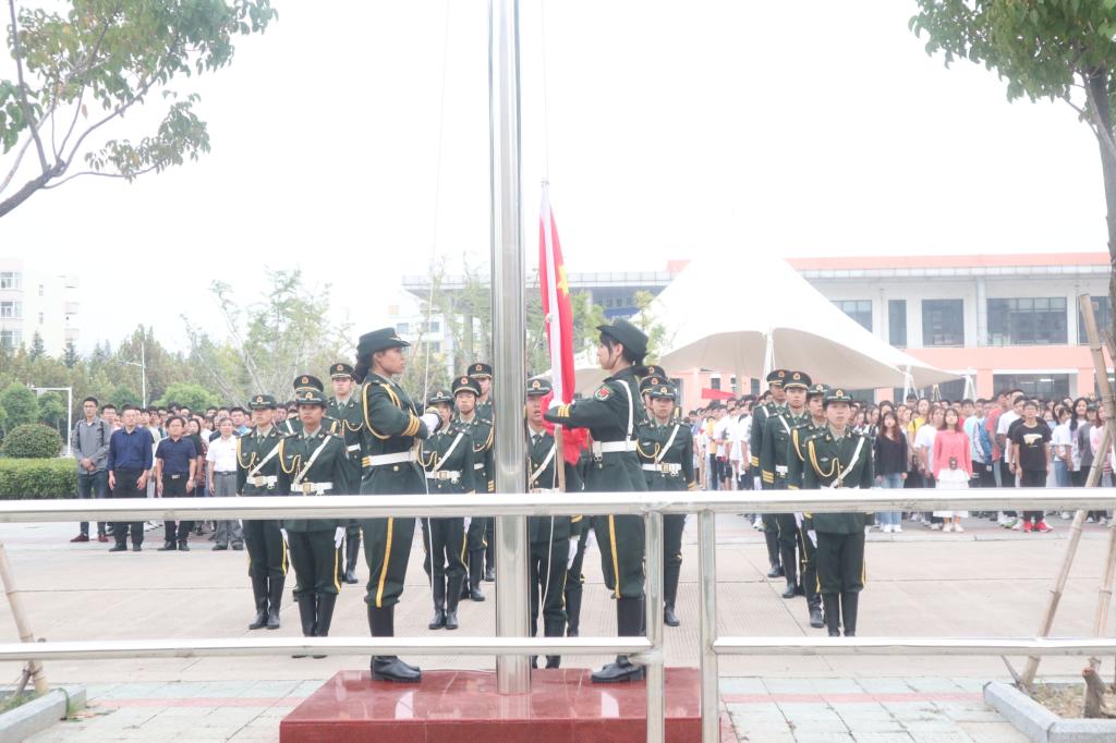 仪式在威严的旋律中拉开帷幕,在全体师生的注目礼下,英姿飒爽的国旗护卫队队员们护送鲜艳的五星红旗进场。伴随着庄严的国歌,五星红旗冉冉升起,迎着朝阳飘扬,深深震撼在场的每一个人。bevictor伟德官网高锟、夏德钱分别代表员工发言,分享了学习过程中的感悟,号召同学们热爱祖国,奋发学习。bevictor伟德官网副书记倪军在讲话中指出作为新时代的老员工,我们将用奋斗共筑中国梦。老员工的本业是学习,希望同学们愿学、勤学、善学,优良学风从我做起,不懈奋斗,更加努力,为“中国梦”的实现做出自己最大的贡献。