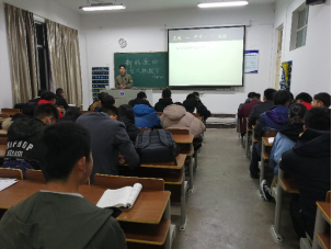 我们并没有用社会中的那些典型人物做讲解,而是从班中挑选出一名同学来给同学们讲解他自己在大学学习生活中好的方法和经验,让同学在就近树立目标。以“身体和灵魂必须要有一个在路上”为主题,给同学讲解了英语中口语的对学习英语的重要性,练习口语可以提升学习者的语感,以及健身对人身体和精神上的积极影响,长期健身可以让人很自律。