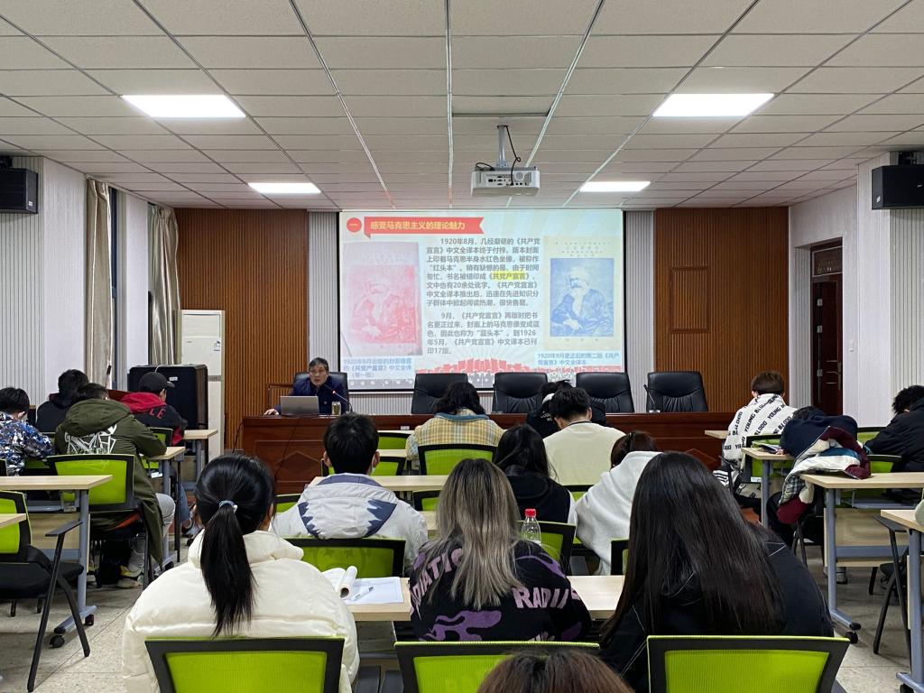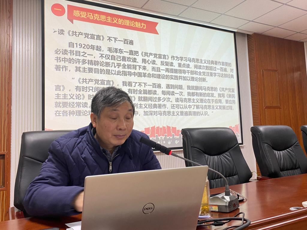 赵季春书记指出,同学们要深入学习贯彻习近平新时代中国特色社会主义思想这一马克思主义理论新成果,争做新时代的青年马克思主义者。结合毛主席“百读”《共产党宣言》,他认为新青年一代应该了解马克思主义的发展过程及加深对马克思主义真理的认识。其中就“三个决议、三次飞跃”赵季春书记为学员们展示了马克思主义理论在中国实践中展示出的魅力,同时他从百年党史中展望现在,介绍了中国青年的使命担当。最后,赵季春书记强调,青年马克思主义者需积极传播和践行马克思主义思想最新成果,扛起光荣使命,谱写新的篇章,做新时代的奋斗者!