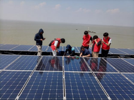 7月25日,实践团成员与国网连云港供电公司员工一同来到开山岛开展红色精神学习、进行岛上光伏系统考察、检测、维护等暑期社会实践活动。
