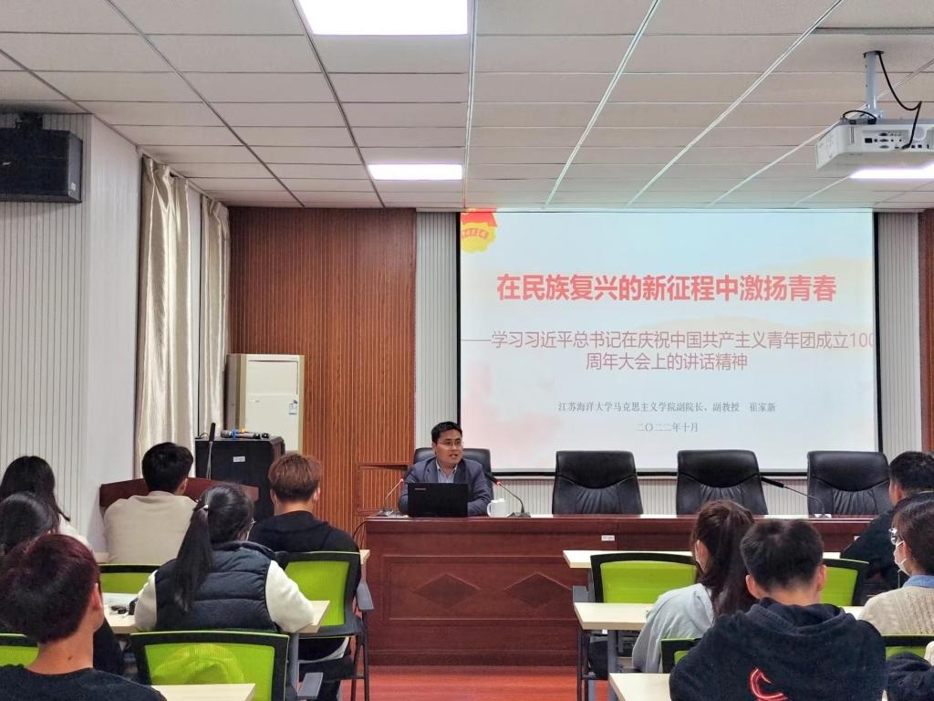 为贯彻学习习近平总书记在庆祝中国共产主义青年团成立100周年大会讲话精神,引导bevictor伟德官网青年学子在学思践悟中坚定理想信念、在奋发有为中践行初心使命。10月13日晚马克思主义公司副经理崔家新副教授在定海楼512为bevictor伟德官网员工骨干开展了一场“在民族复兴的新征程中激扬青春”的主题讲座。