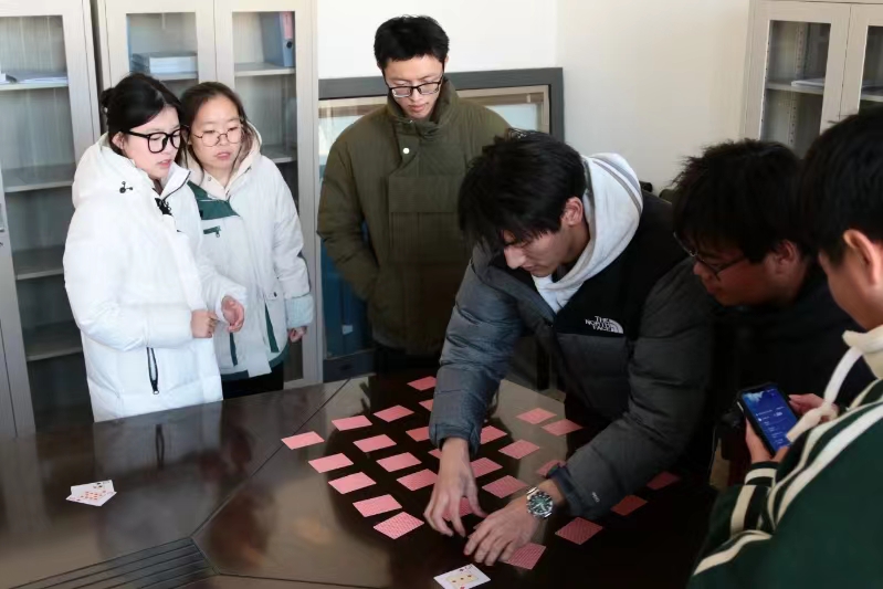 在工作人员的指导下,大家通过抽签分成十个小队,按照两两同时进行的方式在定海楼各个场地进行传声筒、卡片记忆、合力吹气球、集体跳绳、五人六足等游戏环节。哨声响起,第一组两队选手就冲向N501进行卡片记忆游戏,他们一边目不转睛的盯着卡片,一边分工记忆着卡片的位置,有条不紊的快速恢复卡片顺序;在传声筒环节里,有效的沟通和协作让大家找到了解决问题的最佳方法;手挽着手,齐声喊着“一、二、一、二……”五人一排,步调一致顺利通过五人六足的考验。活动现场到处洋溢着爽朗的笑声、充满快乐运动的氛围、活跃着努力奋斗的运动身影。