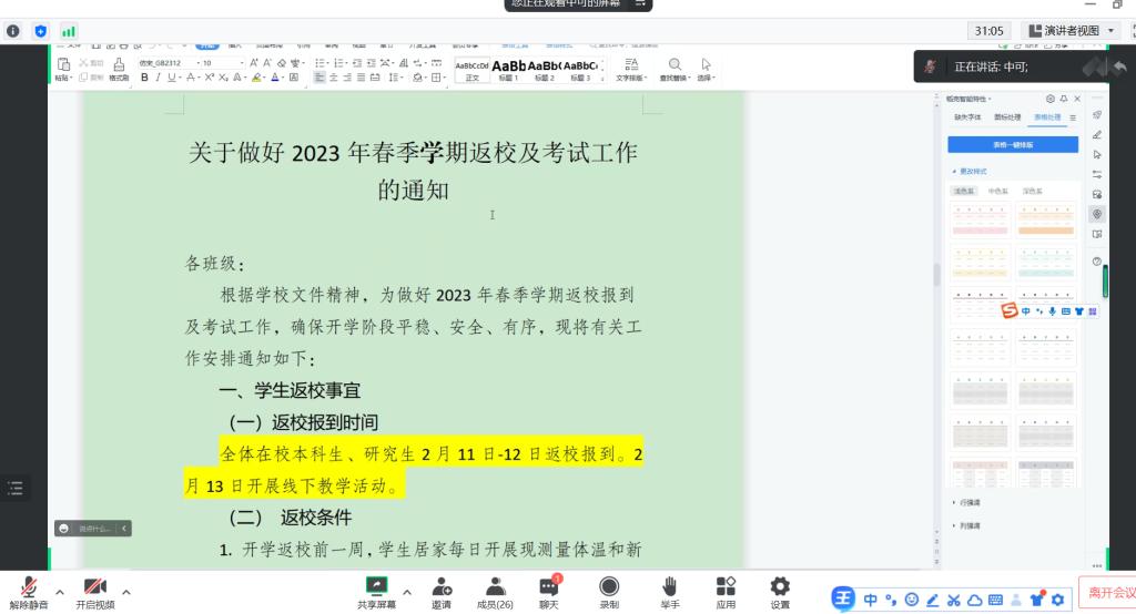 根据疫情形势的变化,公司对开学准备工作作出部署。公司依据公司要求,编制开学工作指导手册。倪军副书记为班主任、辅导员详细解读了员工新学期返校报到以及考试工作的相关事宜,提醒班主任要仔细阅读相关文件,并及时开展班级会议;通知线下考试的具体安排;提醒员工规范提交返校审批材料;统计信息不要遗漏;按时打卡,如实上报个人健康状况;在回程过程中要注意个人防护,并对班主任提出的问题进行了耐心细致的解答,同时针对各类情况,做好相关的安排。