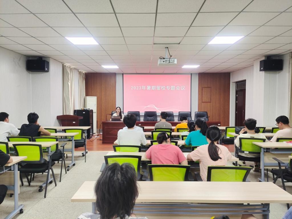 会议上,辅导员张慧婧老师首先介绍了员工暑期留校时间、留校安排、宿舍安排,以及员工考研、参与社会实践、学科竞赛等相关情况,并且列举了暑期员工在校期间应该防范的各类安全问题。留校员工务必严守法律法规,遵守校纪校规,遵守公共秩序和社会公德,不在宿舍内点蜡烛、燃烧杂物;不得使用违章电器。留校员工需增强安全意识,防范安全事故。遵守交通规定,注意交通安全,不乘坐无牌无证无照、无安全保障的车辆和船只;不参与无安全保障的骑游、探险等活动;注意消防安全、防范人身伤害、严防溺水事故、科学避震避灾。遇到突发事件及时向保卫处、辅导员、值班老师和公司领导报告。
