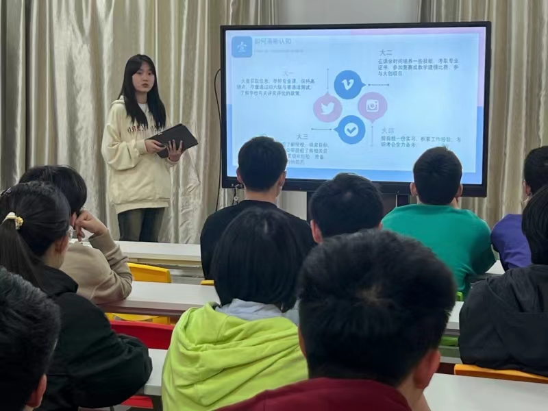 在互动交流环节,两位同学针对学弟学妹们的提问,给出具体建议,鼓励大家积极参与各类学科竞赛,合理安排时间,规划好自己的职业生涯等。