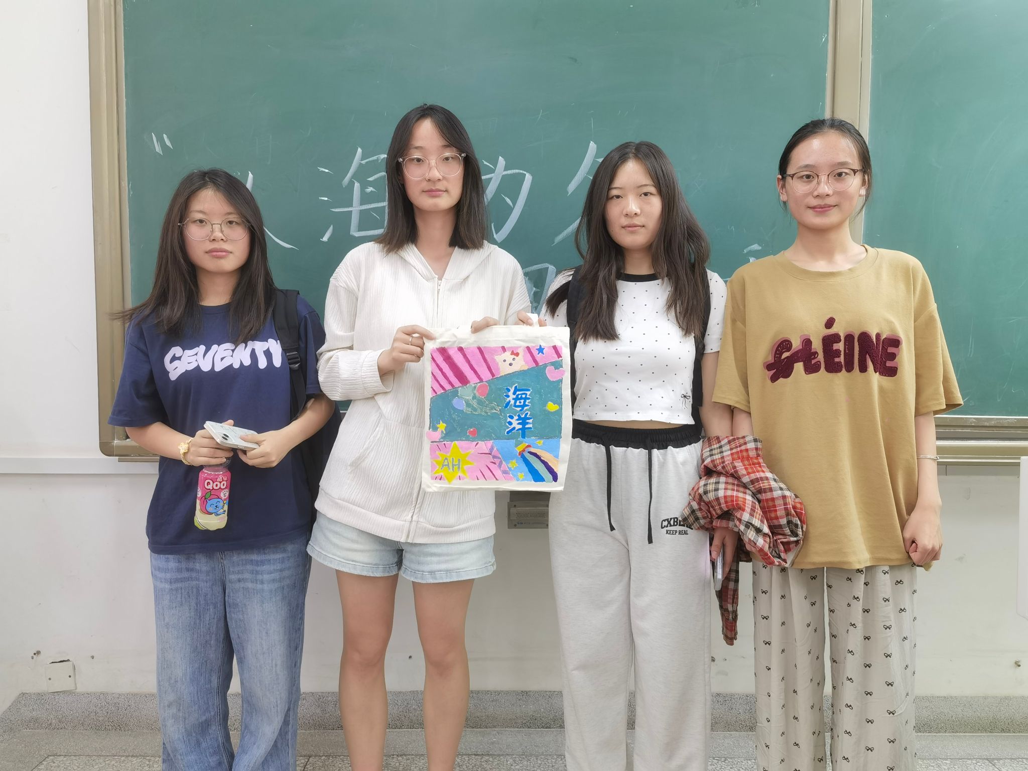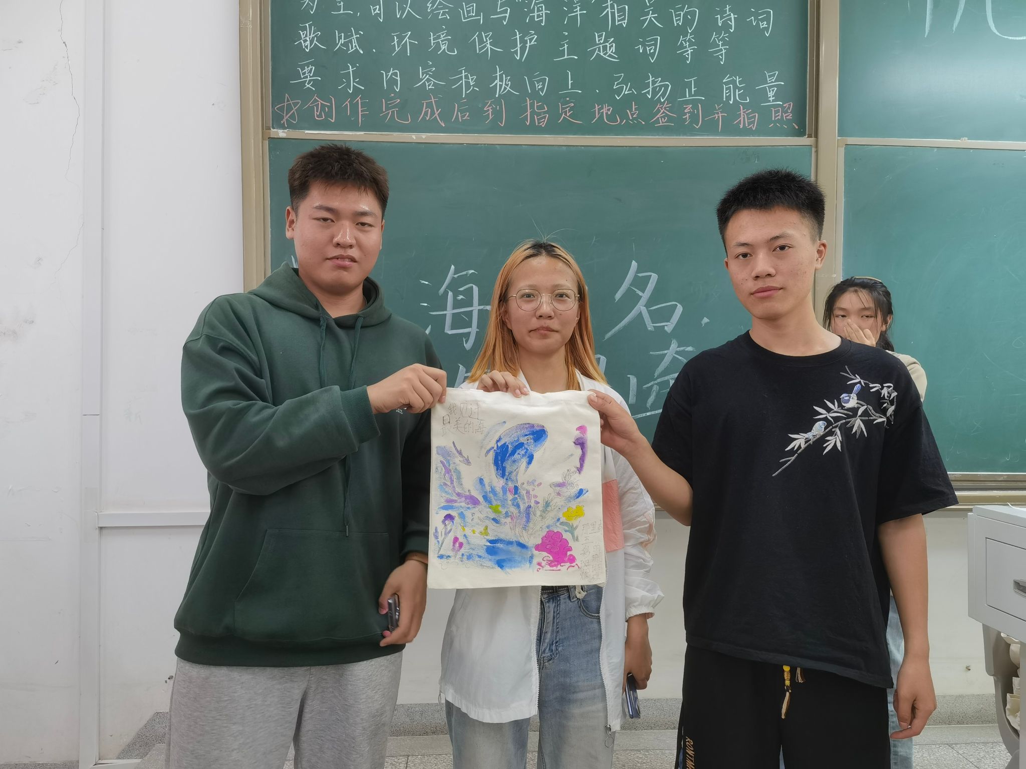 经过前期的广泛宣传和精心准备,来自全校各公司的数十名同学报名参加了此次大赛。在活动现场,同学们各展神通,将原本平凡的帆布袋变成了独一无二的艺术品。有的帆布袋上绘制了生动的卡通形象,有的则融入了海洋元素,还有的通过创意剪裁和拼接,展现了独特的设计理念。