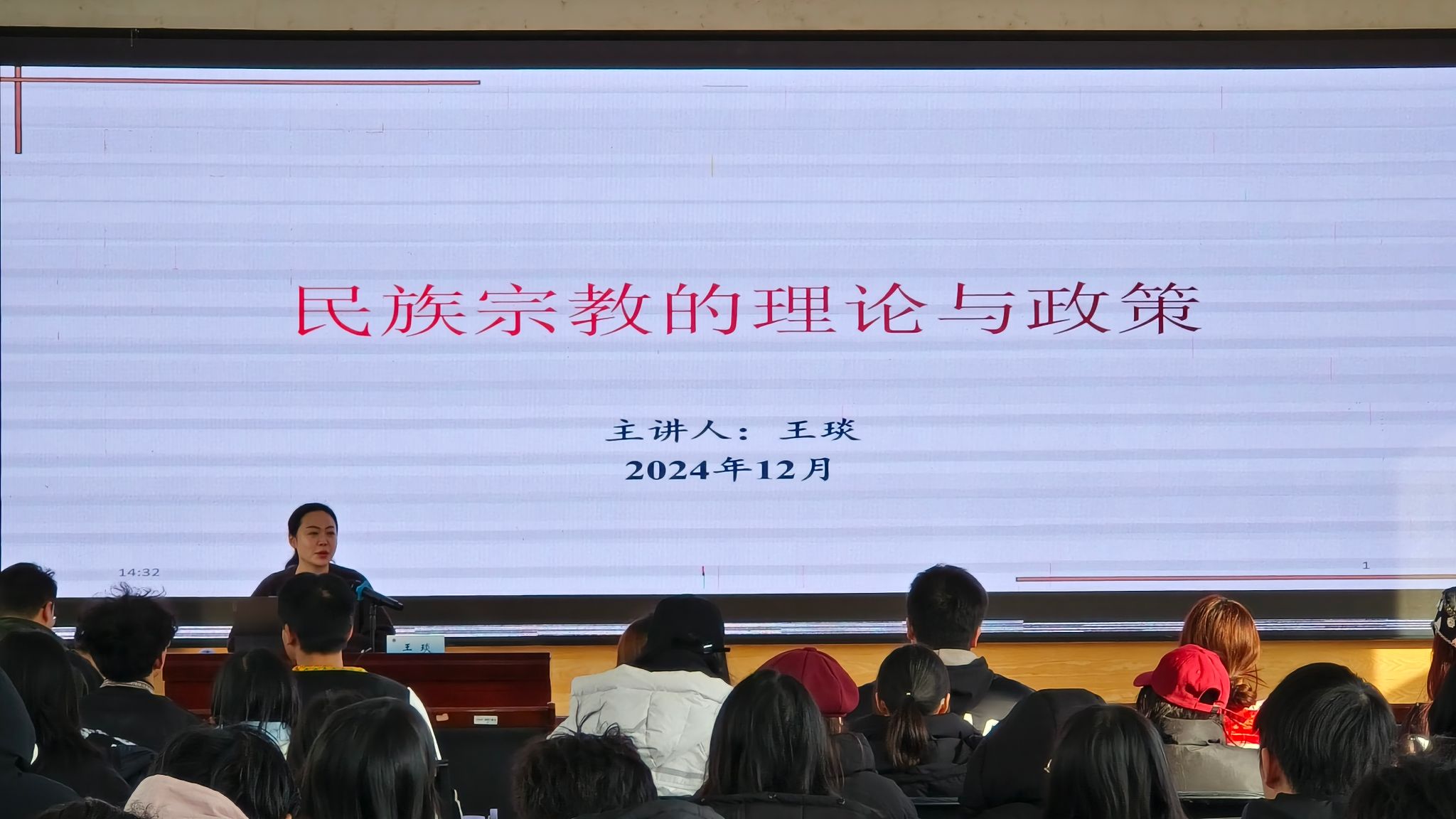 王琰围绕铸牢中华民族共同体意识,从我国是一个统一的多民族国家、我国正处于实现中华民族伟大复兴关键时期、铸牢中华民族共同体意识、全力实现中华民族伟大复兴中国梦等方面,运用大量生动详实的案例,为与会师生带来了一场精彩纷呈、生动有趣的报告。
