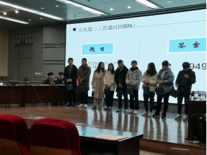 在这个比赛之前,选手们都是经过重重选拔出来的有实力的“顶尖高手”。未能进决赛的以及对数学有浓厚兴趣的同学都纷纷来观赛,赛场上选手之间的斗争十分激烈,为我们展示了一场脑力的较量。比赛时的互动环节,答对题目的观众也是获得理学会准备的礼物。比赛结束后,由我们秘书组的同学们为选手和观众签到。最后,很荣幸辅导员和员工会主席给我们做出了点评。