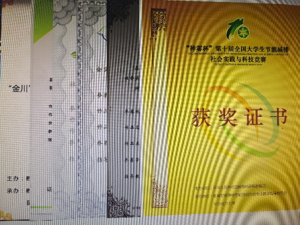 1.全国老员工节能减排社会实践与科技竞赛,国赛B级,获二等奖1项、三等奖7项;
